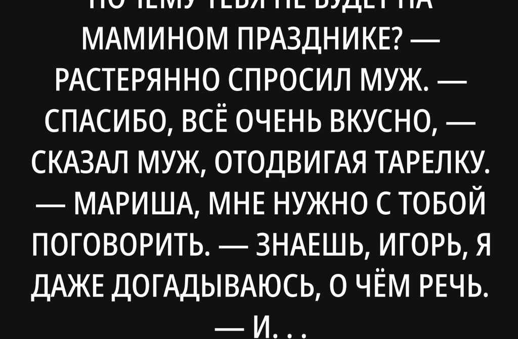 Хотя Мария прямо не настаивала Игорь знал: если выберет праздник матери, жена обидится.