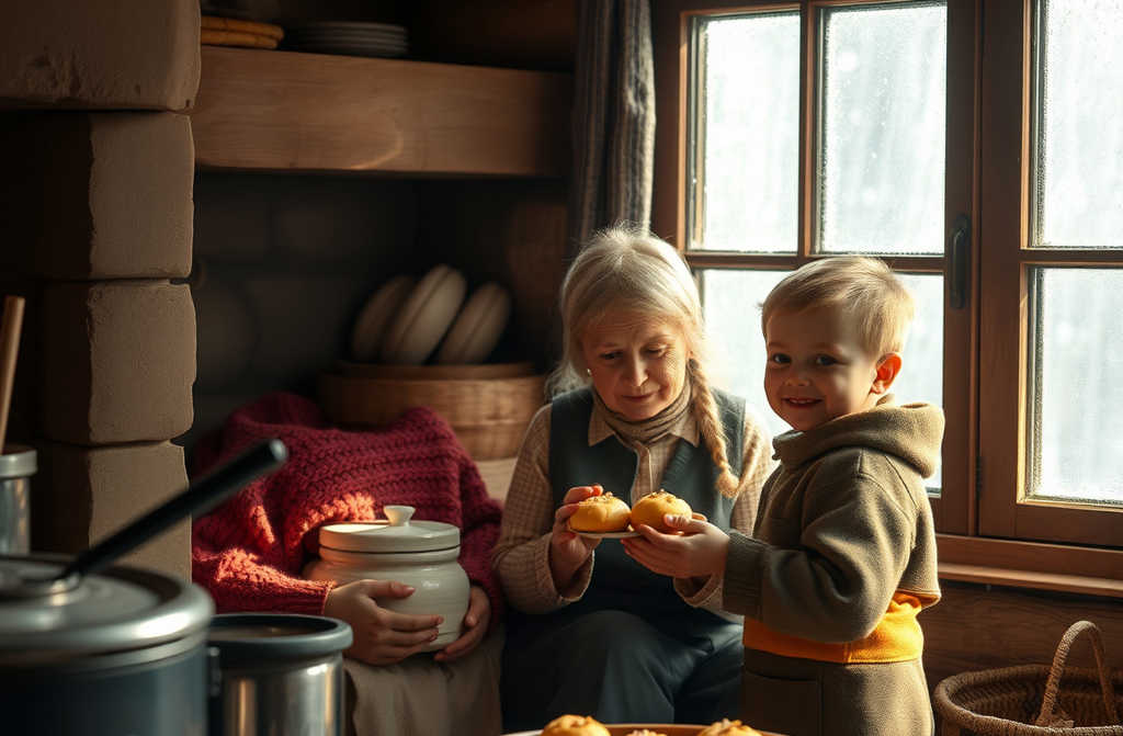 Приходит а в избе тепло, Вася чистый, довольный, сидит, слушает «Колобка» с пластинки, баба Валя порхает по дому: тесто месит, ватрушки делает, старые ноги будто и не болят.