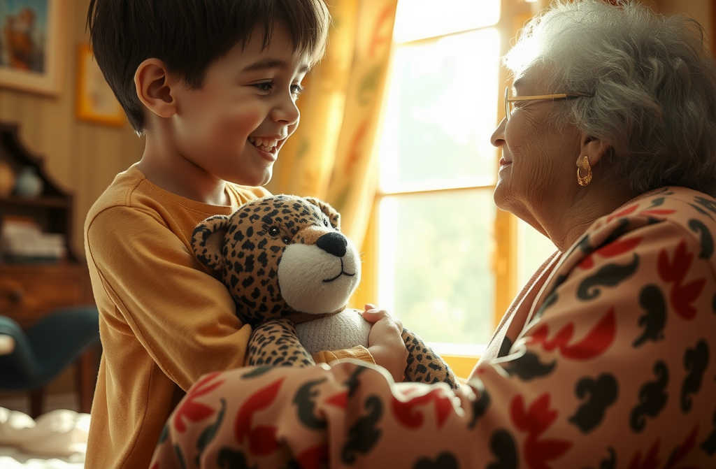 Бабушка Ивана так аккуратно и умело отремонтировала плюшевого леопарда, что тот стал выглядеть даже лучше прежнего. Иван не мог сдержать слёз благодарности и с радостью обнял бабушку за её заботу.