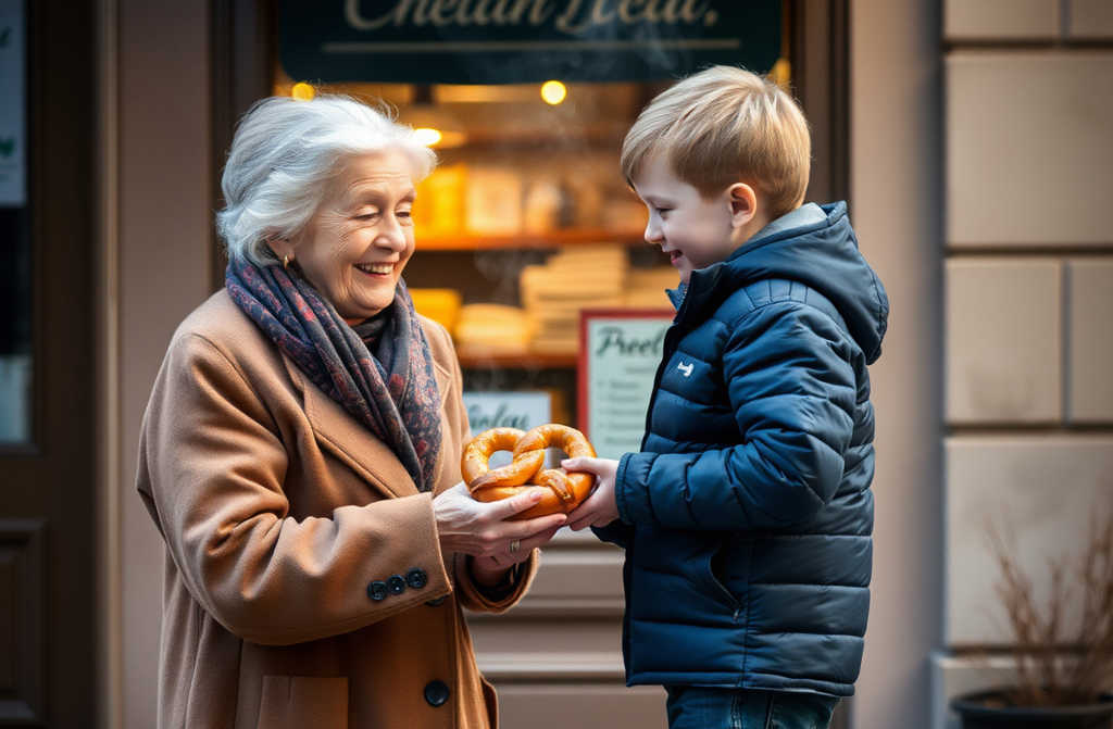 И, может быть, через годы, когда Михаил увидит ребёнка, дрожащего у витрины, или бабушку с потерянным взглядом, он вспомнит синюю куртку, тёплые бублики и холодную скамейку, где сидели с бабушкой, и поймёт, что стоит протянуть руку и сказать: