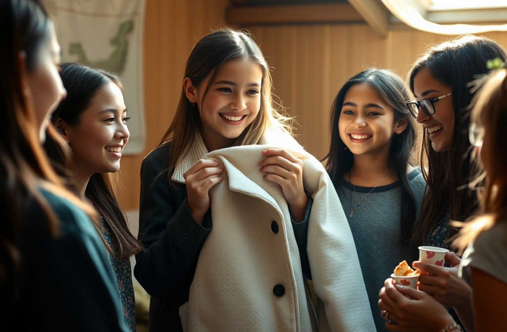 Мария в каком-то сне примерила обнову холодок подкладки сменился уютным теплом, словно её обняли за плечи. В зеркале она увидела другую себя в модном пальто, с краской румянца от волнения и необычной улыбкой. Старенькая юбка и красная футболка, конечно, не шли к такому наряду, но это не имело значения казалось, настал праздник.