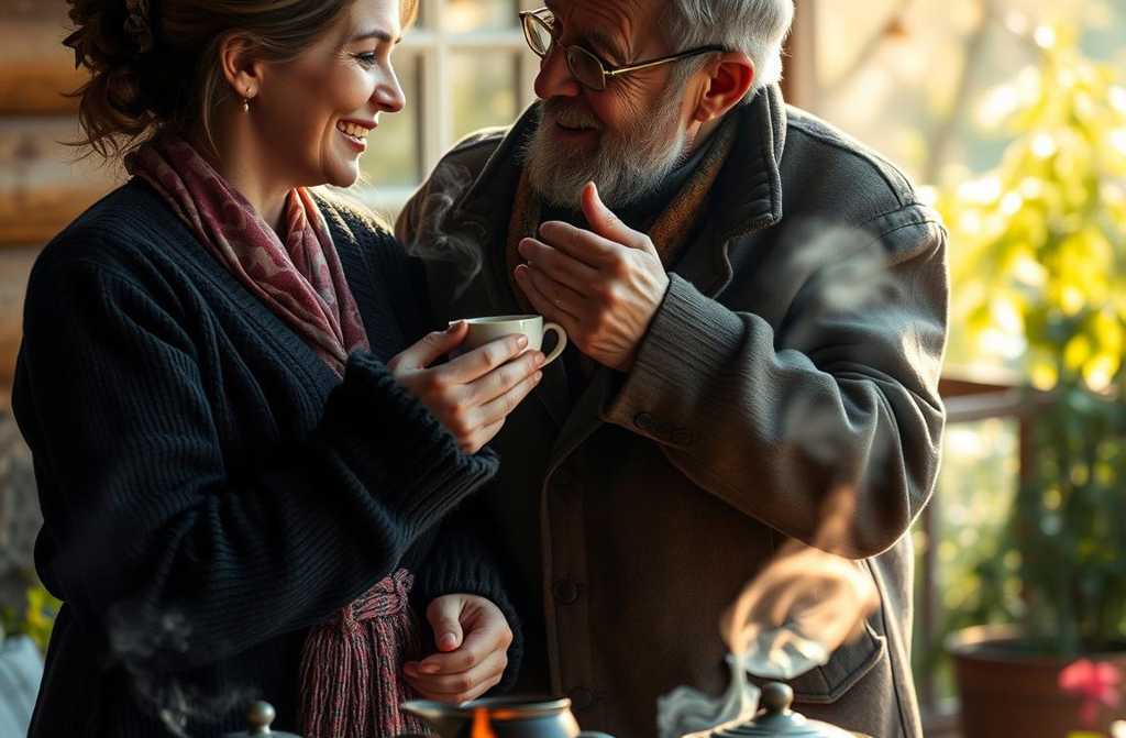 Перед ней появился пожилой мужчина, седой волос и морщины, сидящий у небольшого костра, в котором грел воду в грязной кружке.