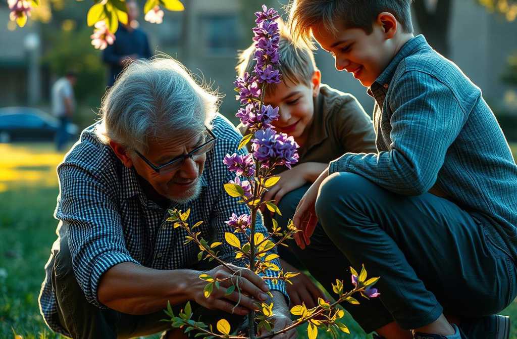 Он учил внука ухаживать за саженцами: когда поливать, как защитить от солнца. Каждый урок становился игрой, а заодно и напоминанием заботиться о природе значит заботиться о своём дыхании.