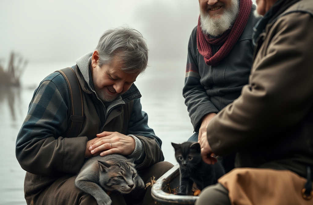 И Серый появился, дрожа, прижавшись к моим ногам и жалобно мяукнул. Я схватил его, бросился к лодке, посадил кота рядом с собой. Мужчина уставился, но в этот момент