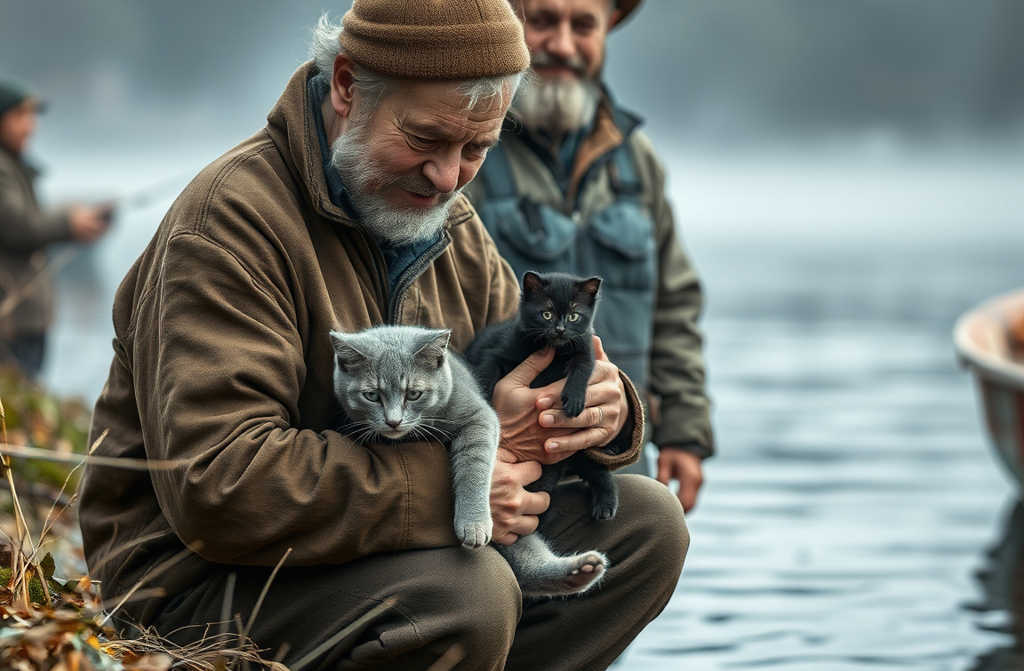 Кот посмотрел на меня, виновато мяукнул, подошёл к Василию, встал на задние лапы и упёрся передними в огромные сапоги. Мужик поднял его на руки, а большой серый бандит обхватил его шею лапами и прижался.