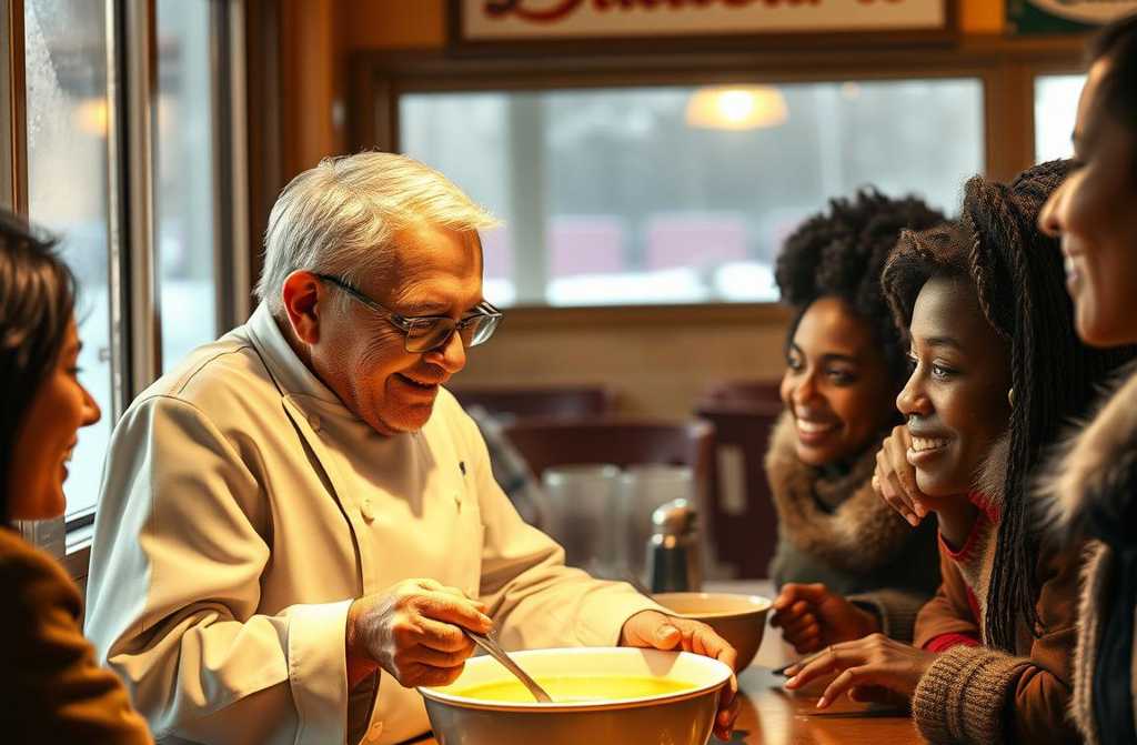 Каждый, кто переступал порог будь то бездомный, рабочий с завода, старик или ребёнок, сбежавший от холода, получал миску горячего супа. Но с одним условием: назвать своё имя и услышать, как Арнольд его повторит. Этот маленький акт признания согревал сердце сильнее любой еды.