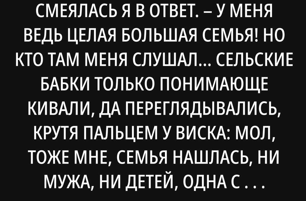 Да вы что, разве я одна? смеялась я в ответ. У меня ведь целая большая семья!