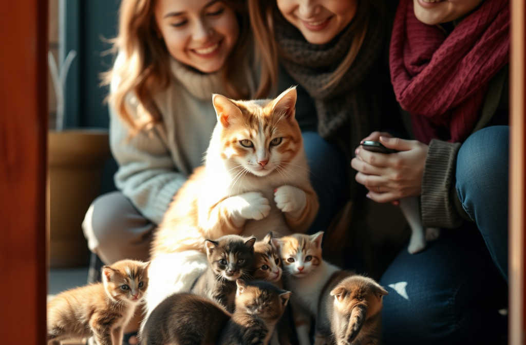 Осторожно, но решительно, Соня одного за другим перетаскала котят к подъезду. Уселась рядом, пытается греет их, облизывать а самой страшно: вдруг Аня с Игорем увидят, как скажут? Но делать нечего семейство вот оно, нужно брать на себя.