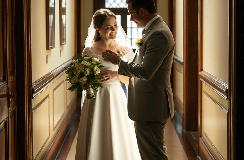 Мы вышли в коридор. Муж поправил мою фату, съехавшую набок.