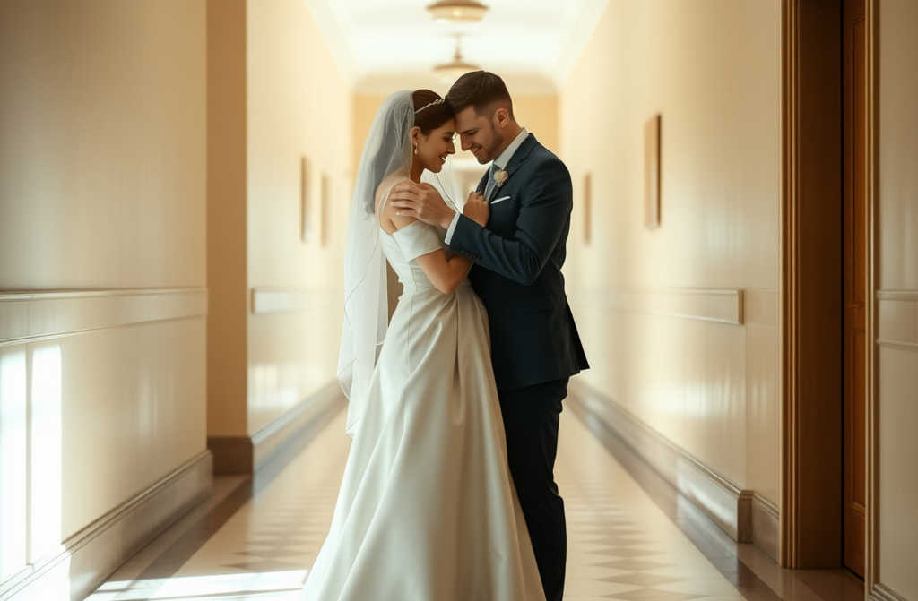 Вышли в коридор. Муж бережно поправил мне фату, которая уползла набок.