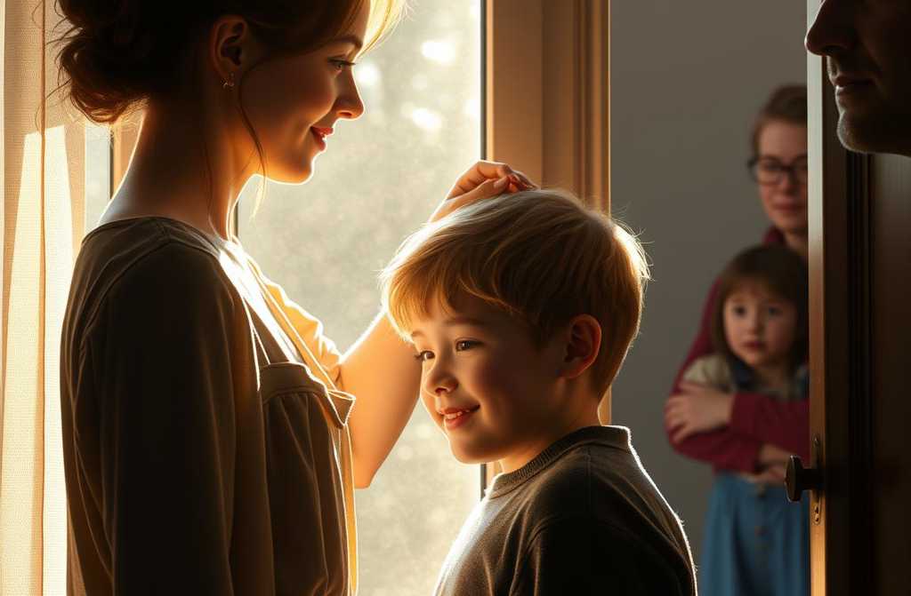 Однажды Дмитрий, проходя по коридору, остановился у двери. Изнутри доносились тихие голоса. Он заглянул и остолбенел: его сын сидел перед зеркалом, позволяя Анастасии касаться своих волос, а на его лице появилась лёгкая улыбка.