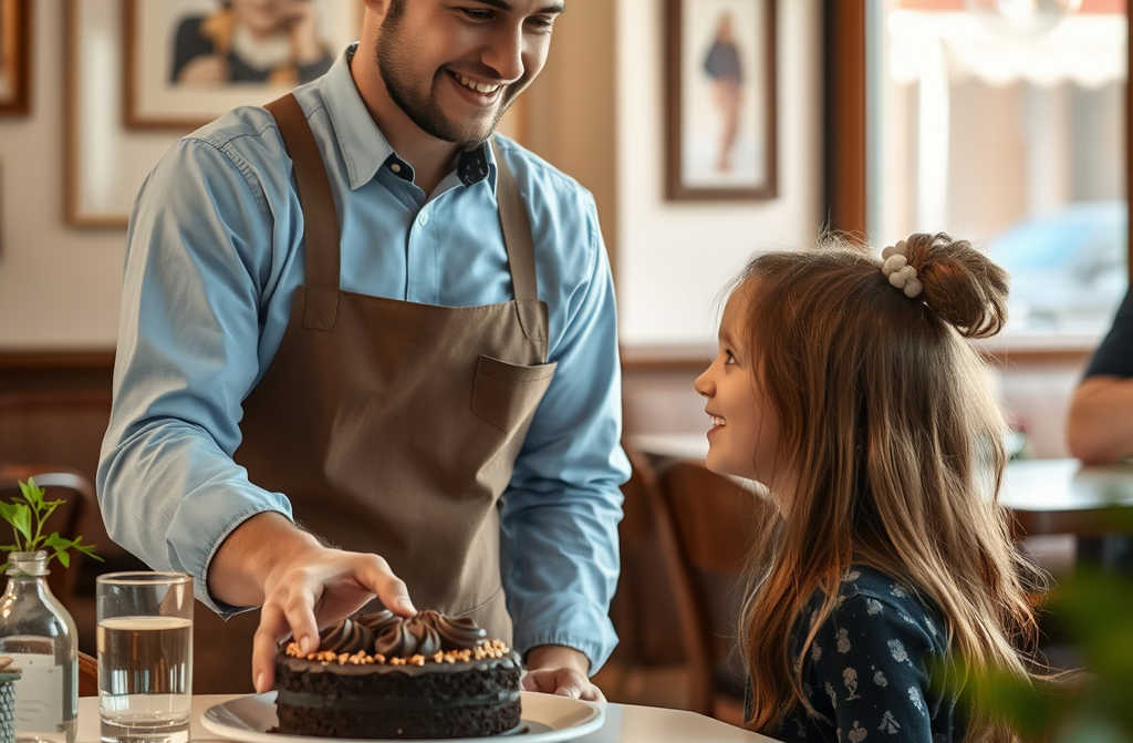 Дарья села тихонько и взяла вилку. Не заметила она, что с самого входа за ней наблюдал пожилой официант Иван Семёнович, человек с добрыми, усталыми глазами. Как только девочка потянулась за первым куском, он быстро подошёл и без слов забрал тарелку у неё из-под носа. У Дарьи округлились глаза, по щекам покатились слёзы, и она ждала, что вот-вот её выгонят или накричат. Но вместо этого Иван Семёнович переглянулся с поваром и ушёл на кухню. Дарья осталась сидеть, измученно утирая слёзы.