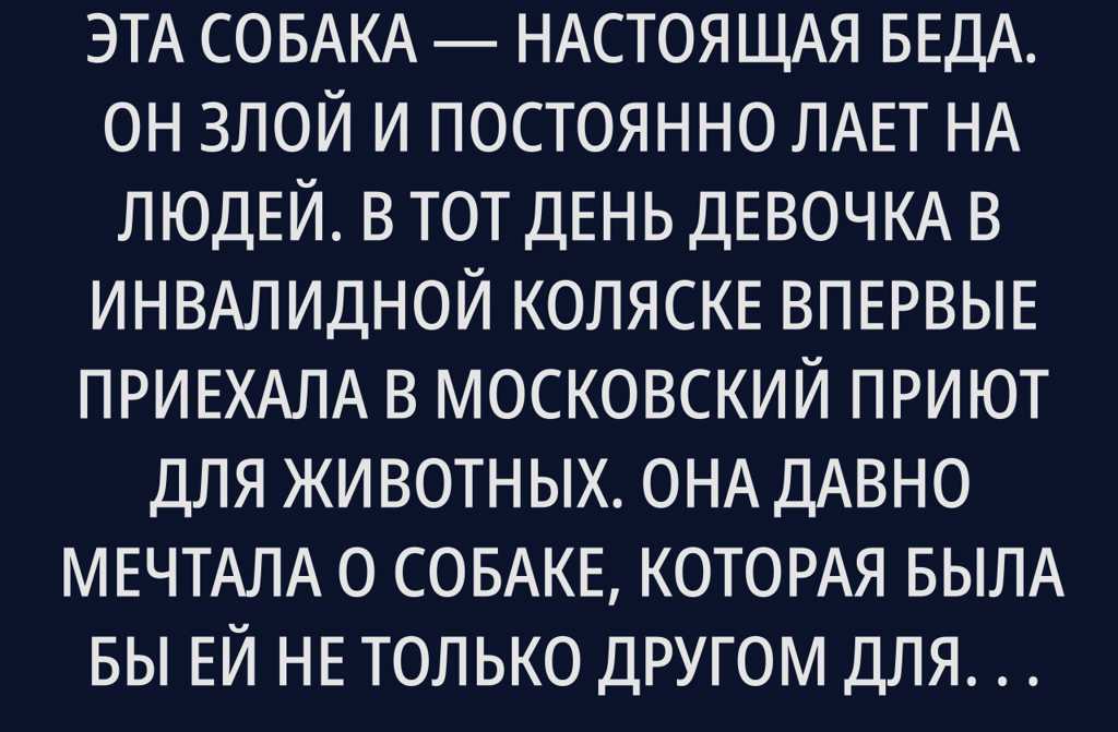 В тот день девочка в инвалидной коляске впервые приехала в московский приют для животных. Она давно мечтала о собаке, которая была бы ей не только другом для прогулок, но и настоящей поддержкой.