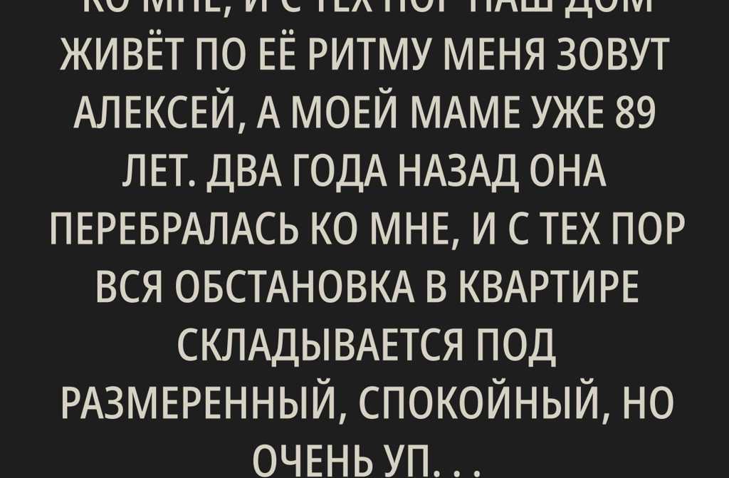 Два года назад мама переехала ко мне, и с тех пор наш дом живёт по её ритму