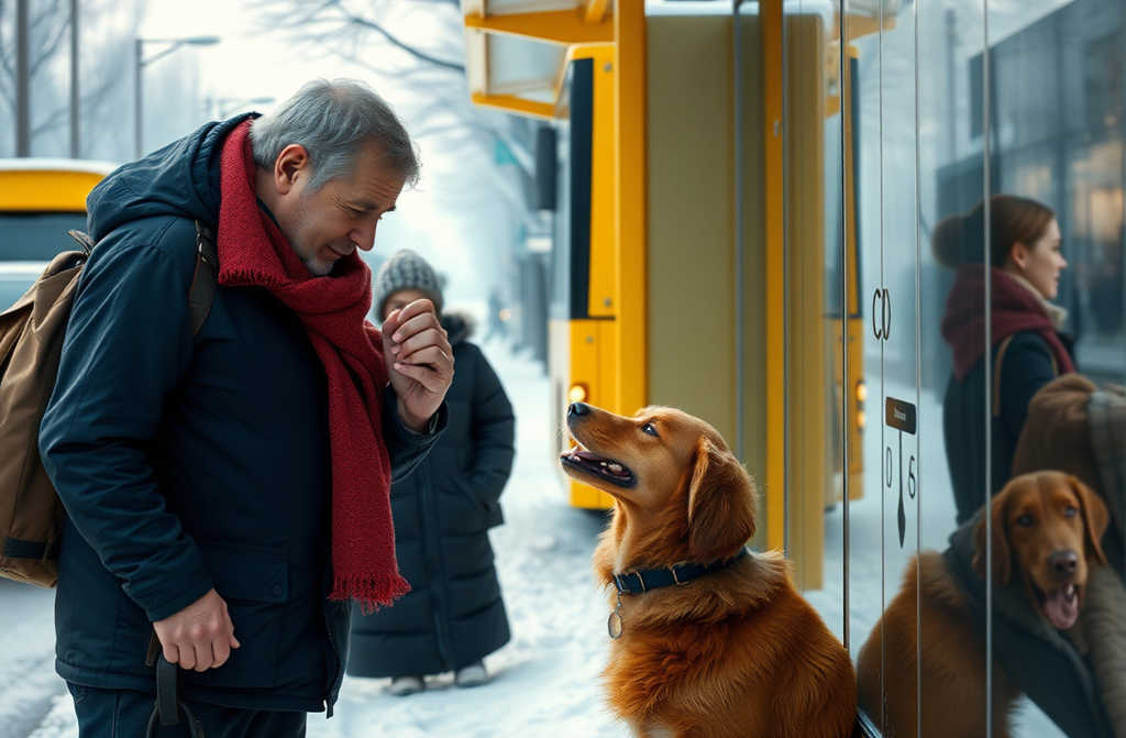 Пес вскакивает каждый раз, когда открывается дверь автобуса. Ждет…