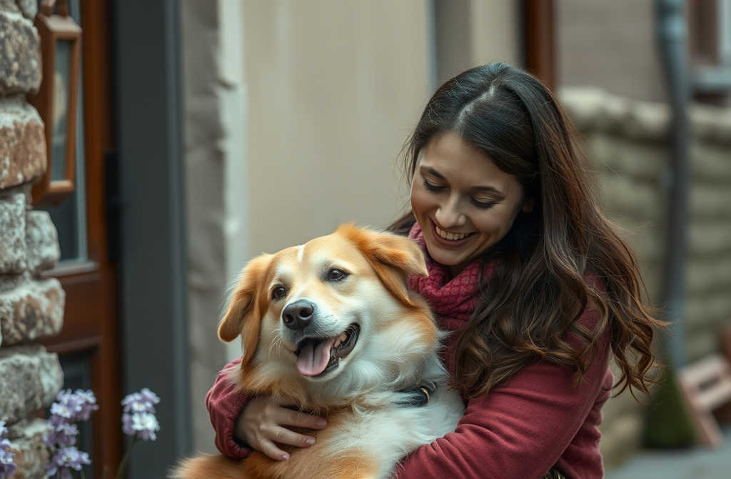 Жанна нашлась у её подъезда измотанная, но когда видит Валентину, начинает лаять, лизать руки, радостно извиваться.
