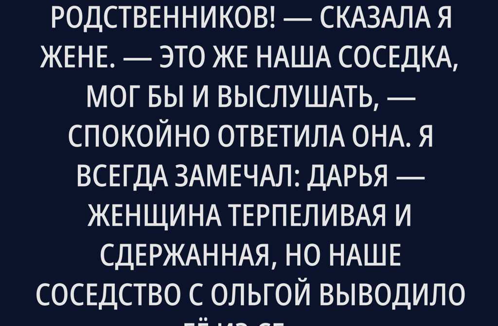 Это же наша соседка, мог бы и выслушать, спокойно ответила она.
