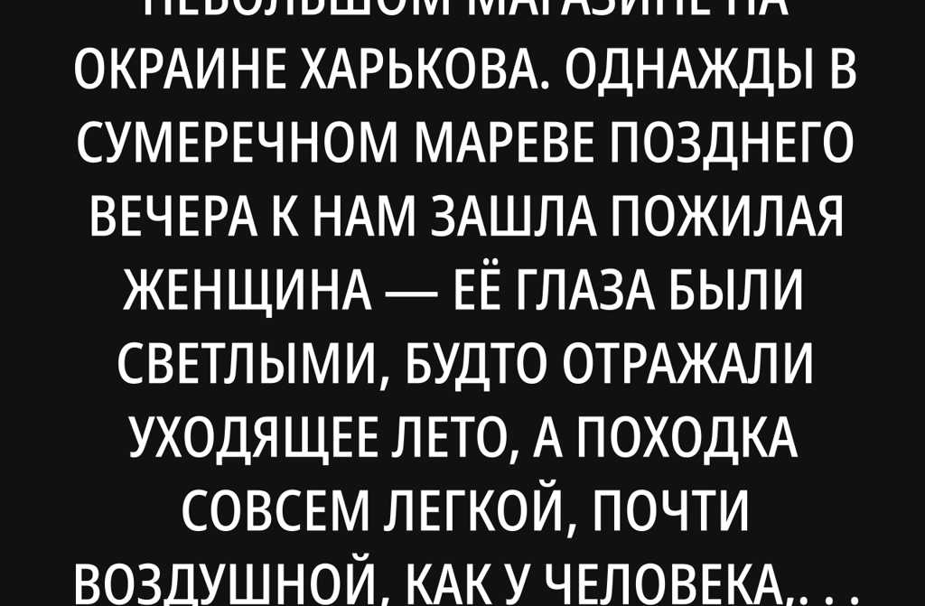 Я работала продавщицей в небольшом магазине на окраине Харькова. Однажды в сумеречном мареве позднего вечера к нам зашла пожилая женщина её глаза были светлыми, будто отражали уходящее лето, а походка совсем легкой, почти воздушной, как у человека, привыкшего опереться лишь на свою память. Она сложила в потрёпанную сумку батон, два огурца, пару яблок и молча замерла перед прилавком, словно что-то забыла или сама забылась. Я сразу поняла сама она всё это не унесёт.