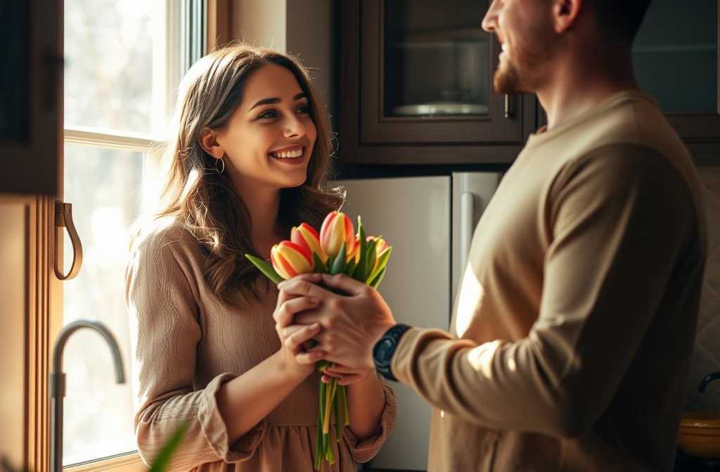 Я пригласил его к себе, предложил чай. Он достал из пакета небольшой букет тюльпанов. Алёна приняла букет, глаза её засияли. За чашкой чая разговор зашёл о погоде и ценах в магазинах. Когда Алексей собирался уходить, он остановился у двери, снял пиджак, обул ботинки и сказал: