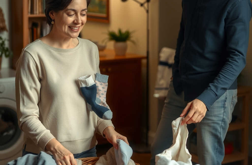 У нас дома всё складывалось иначе мой муж Иван не собирался стирать свои носки. По его мнению, нет смысла стирать их вручную: любой мог бы закинуть их в стиральную машину, а потом повесить на сушилку. Для него это было само собой разумеющееся.