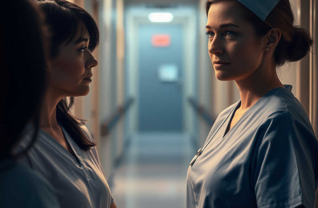 Дверь открылась. Из коридора вышла молодая, очень усталая медсестра, в белом халате, с синими кругами под глазами.