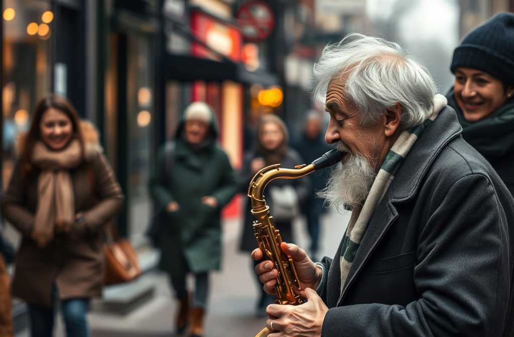 В 72 года я всё ещё выхожу на улицу с саксофоном, даже когда температура опускается до нуля. Казалось бы, это тяжело, но я чувствую полную гармонию: музыка даёт мне энергию, а случайные слушатели, остановившиеся на минуту, вдохновляют продолжать. Каждая нота, каждый звук это частица моей души, которую я отдаю людям, даже если они этого не осознают.