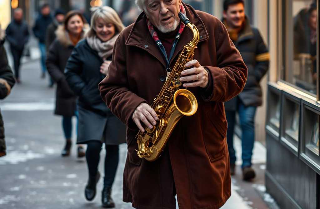 В 72 года я всё ещё выхожу на улицу с саксофоном в руках, даже когда термометр показывает минус пять. Казалось бы, это тяжело, но я чувствую полную гармонию: музыка даёт мне энергию, а случайные слушатели, задерживающиеся на минуту, вдохновляют продолжать. Каждая нота, каждый звук это частица моей души, которую я отдаю людям, даже если они этого не осознают.