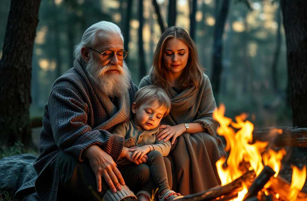 Ночью Ваня почти задыхался от страха, звуки леса заставляли его рыдать. Он лежал, прижавшись к тёплому телу деда, укрывшись лапником. Когда костёр начал гаснуть, мальчик героически подбрасывал новые дрова.