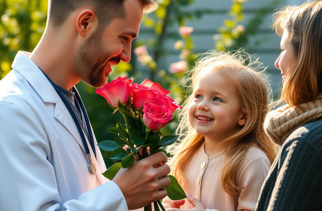 Когда наконец сняли у Арины повязку, она первый раз в жизни увидела всё сама: маму, букет роз, и высокого красавца Дмитрия с серыми глазами. Слёзы, радость, такой момент светлый Теперь только очки надо носить, но это уже пустяки после всего.
