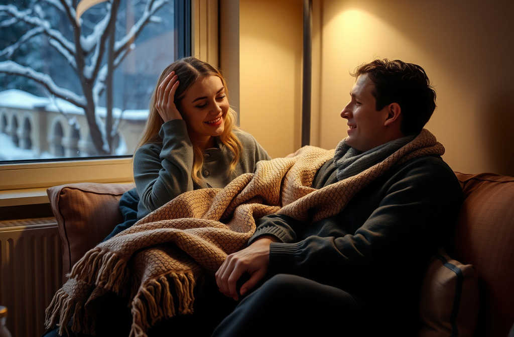 В квартире у Марии и Артёма царило тепло и мир. За окном кружилась метель, а у них дома уют, покой и мягкие тени. Лампа под старым абажуром отбрасывала на стены островки золотого света; под шерстяным пледом на диване супруги почти не ощущали холода, возраста, забот. На экране телевизора шла старая советская комедия, знакомая с детства, где даже шутки можно было предсказать заранее, но всё равно было приятно посмеяться и отдохнуть душой.