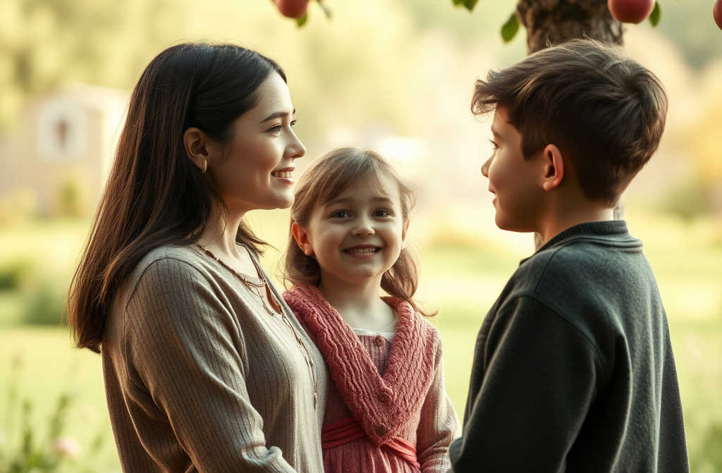 Солнце клонится к закату, окрасив старую яблоню в розовые тона той самой, под которой всё началось. Она растёт, как и мы, как наш род.