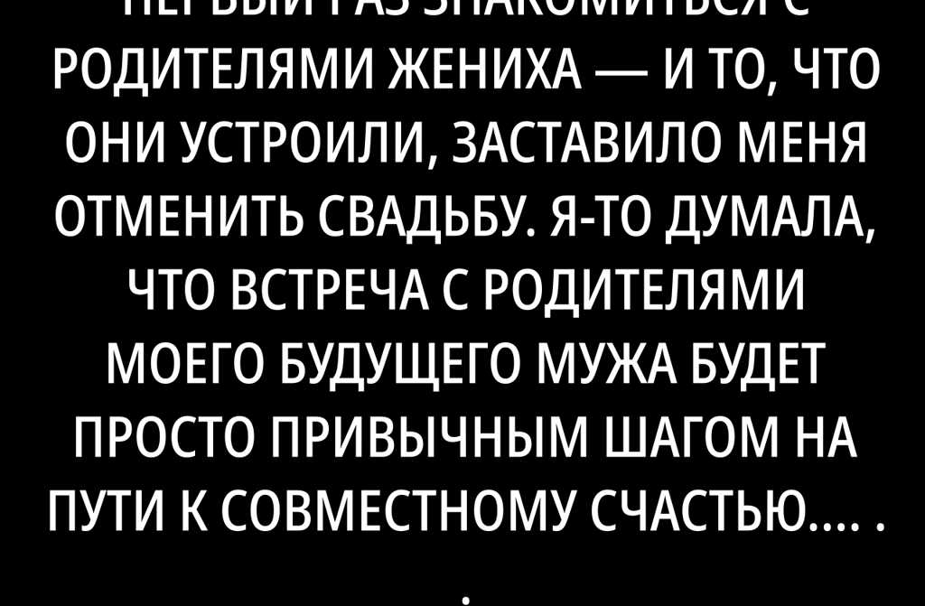 Все казалось чуть ли не идеально… за одним маленьким исключением: с его родителями я ни разу так и не встретилась. Жили они в другом городе Иван все время находил отговорки: то машина ломается, то у мамы собака заболела, то у папы баня протекла. Но вот кольцо на пальце, новость о помолвке прокатилась по родне, и родители настойчиво попросили лично посмотреть на невесту.
