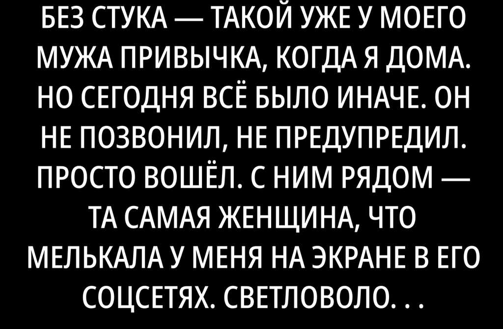 Дверь в квартиру распахнулась без стука такой уже у моего мужа привычка, когда я дома. Но сегодня всё было иначе. Он не позвонил, не предупредил. Просто вошёл. С ним рядом та самая женщина, что мелькала у меня на экране в его соцсетях. Светловолосая, глаза бегают, будто ищет выход, платье по-питерски не по сезону вечер промозглый, а она вся лёгкая. Сумочку вцепила, как щит.