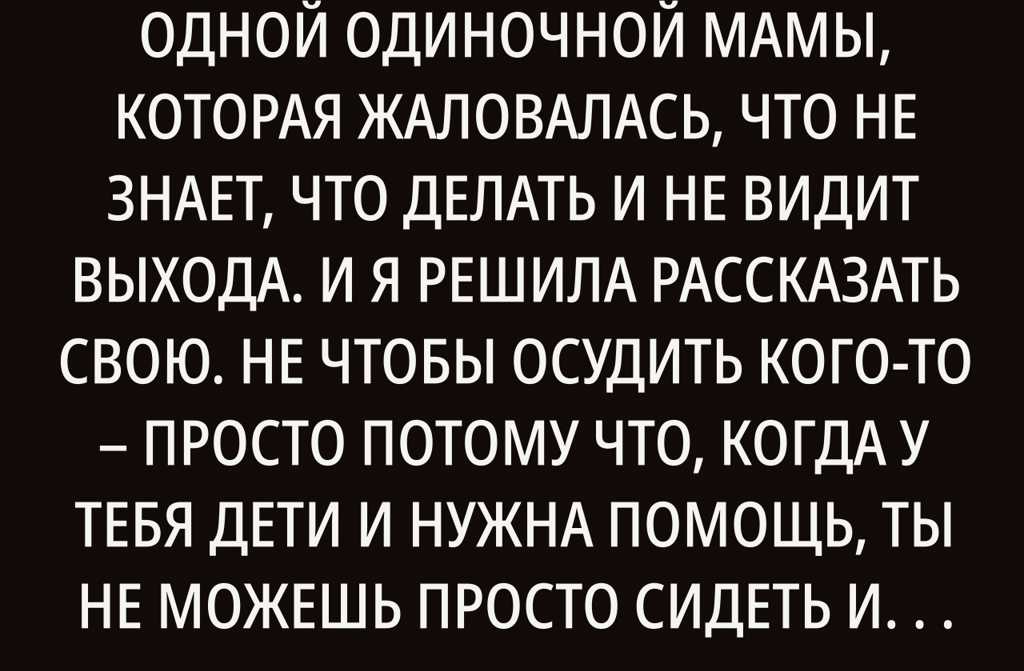 Я прочитала историю одной одинокой мамы здесь, которая говорила, что не знает, как дальше жить и не видит выхода. Захотелось поделиться своей — не чтобы судить кого-то, а потому что когда у тебя есть дети и ты в нужде, нельзя просто ждать, что деньги упадут с неба. Мне никто ничего не дал. Я сама всего добилась.