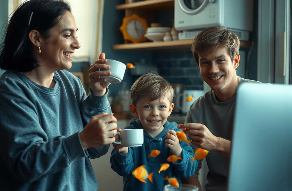 Пока мы сидели на кухне с Ириной и пили кофе, Никита смотрел мультфильмы. Не прошло и пяти минут, как раздался громкий грохот. Забежав в зал, я увидел разбитый аквариум. Рыбки были по всему ковру, вода растеклась в каждый угол.