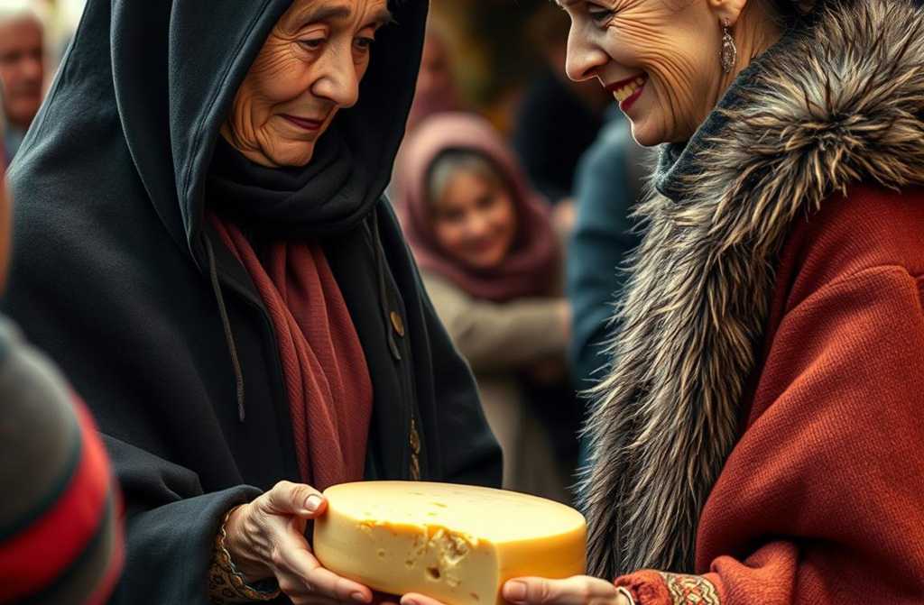 Рынок каждый субботний день пахнет свежим хлебом, жареной рыбой и ароматом сыров, которые выкладывают на прилавки. Люди толпятся, обсуждают цены, сравнивают товары, иногда просто останавливаются, чтобы посмотреть, как ктото ловко резанет сыр или отрежет кусок колбасы. В самом углу, где торги не так шумны, стоит старушка тётка Инна Алексеевна, простая женщина из деревни, с морщинистыми, но крепкими руками, с плотным зелёным платком, завязанным под подбородком. Её глаза теплые, как у тех, кто живёт честно и без притворства.