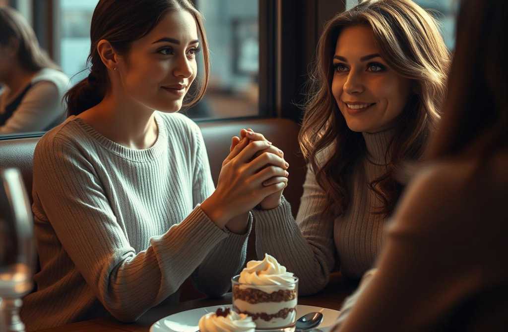 Тирамису, покрытый какао и веточкой мяты, выглядело как маленькое произведение искусства. Я взяла ложку, но лишь покрутила её в пальцах, не решаясь глотнуть.