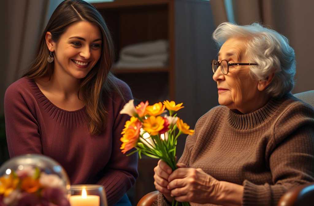 Здравствуй, мамочка! Замечательный у меня сегодня день, пришла рассказать! А это тебе подарок, девушка положила на стол букетик полевых цветов.