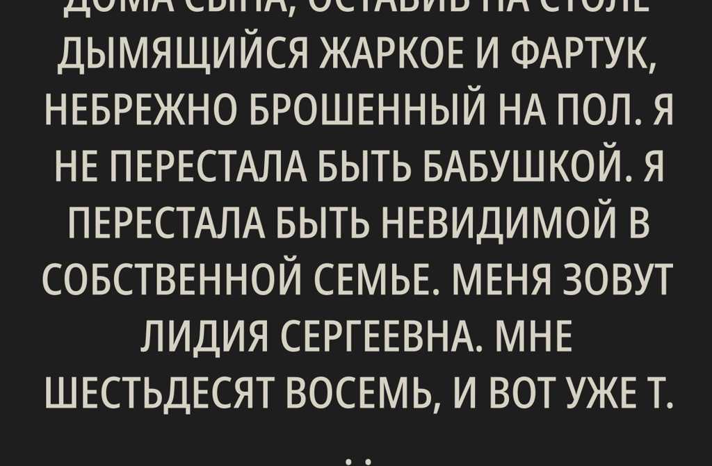 Сегодня вечером я вышла из дома сына, оставив на столе дымящийся жаркое и фартук, небрежно брошенный на пол. Я не перестала быть бабушкой. Я перестала быть невидимой в собственной семье.