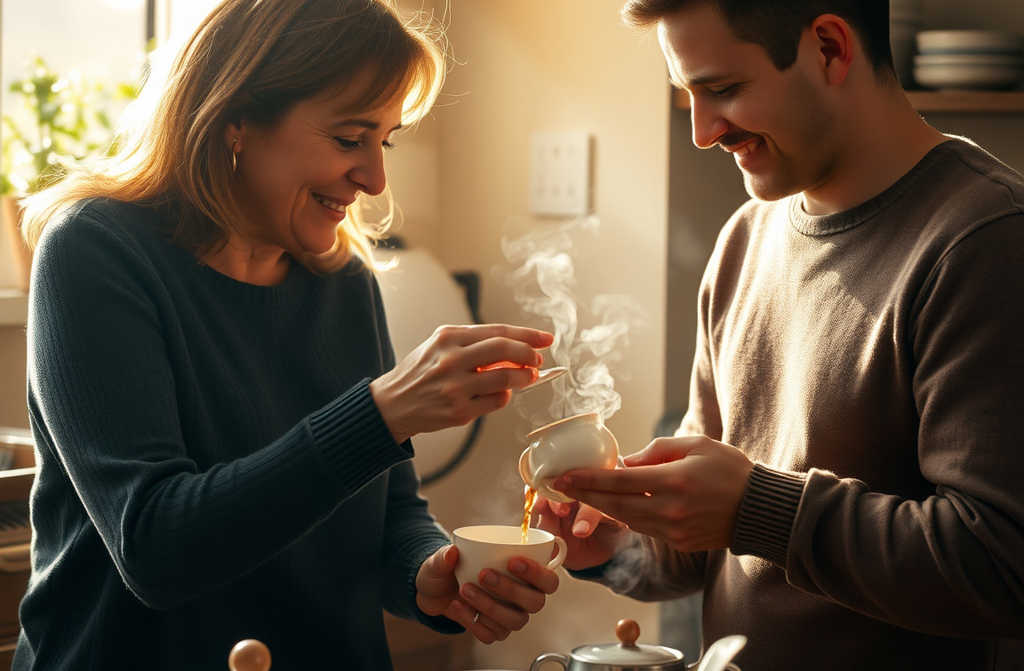 Галина Ивановна разложила чашки, достала печенье. В дверях появился Андрей, уже более спокойный.