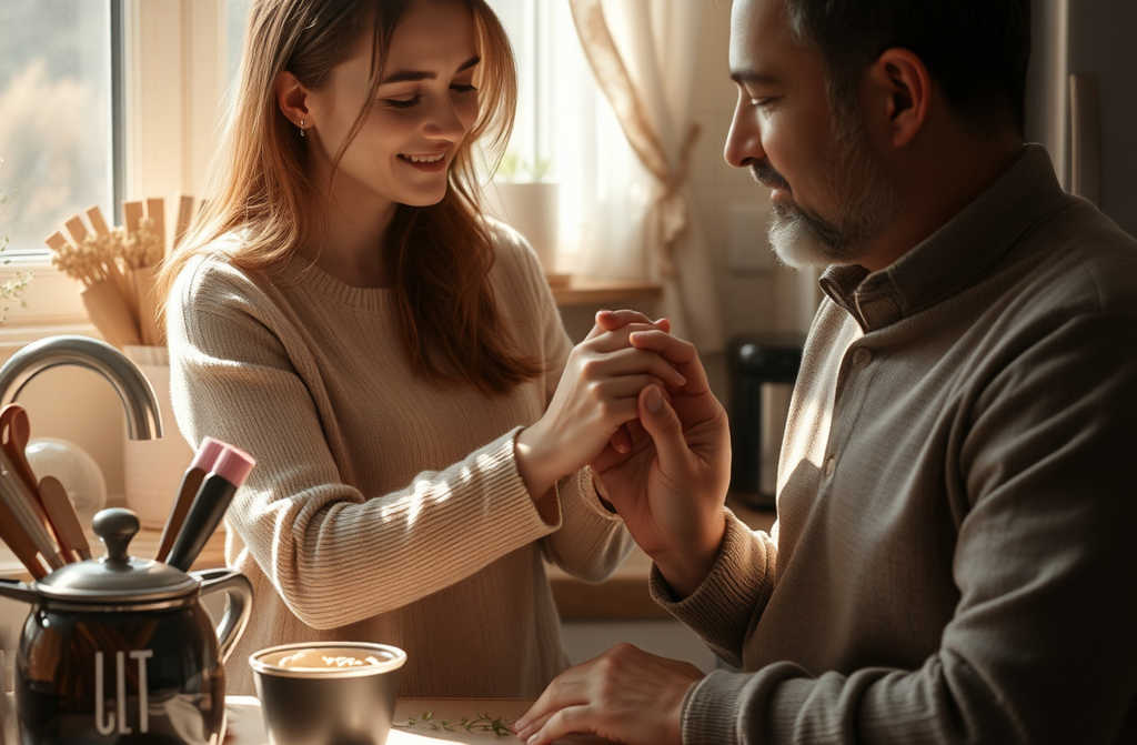 Вика мыла посуду, складывая тарелки так тихо, чтобы не тревожить тишину, за которую они заплатили всё. Алексей обнял её, легко поцеловал в волосы.