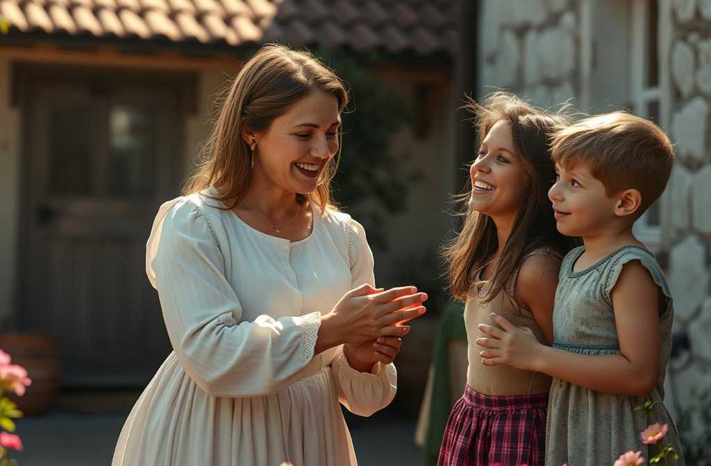 Я теперь смотрю на их улицу. Вот их дом, весь в герани и петуниях. Степан, уже с сединой в волосах, но всё такой же крепкий, учит Ваню резать дрова. А Мила, уже молодая невеста, помогает Злате развешивать на бельевой верёвке простыни, пахнущие солнцем и ветром. И они смеются, будто слышат лишь своё собственное, девичье счастье.