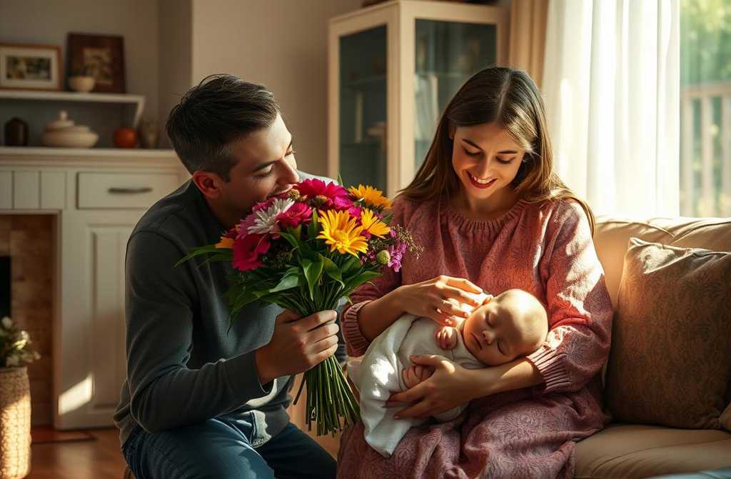 Тот же день Фёдор пришёл к жене с огромным букетом цветов, встал на колени и искренне попросил прощения, признался, что поверил страшилкам друга, и вмещал в себя только вину. Оля простила его, они вернулись в свою квартиру и начали жить в согласии. Фёдор вдруг почувствовал, что любит её сильнее, чем когдалибо. Килограммы, усталость всё отлетело. Он стал помогать жёнe, брать на себя больше забот о малыше: сидеть с ребёнком, вставать ночью, укладывать спать, стирать и готовить, когда нужно. Оля даже записалась в спортзал и начала меняться к лучшему.