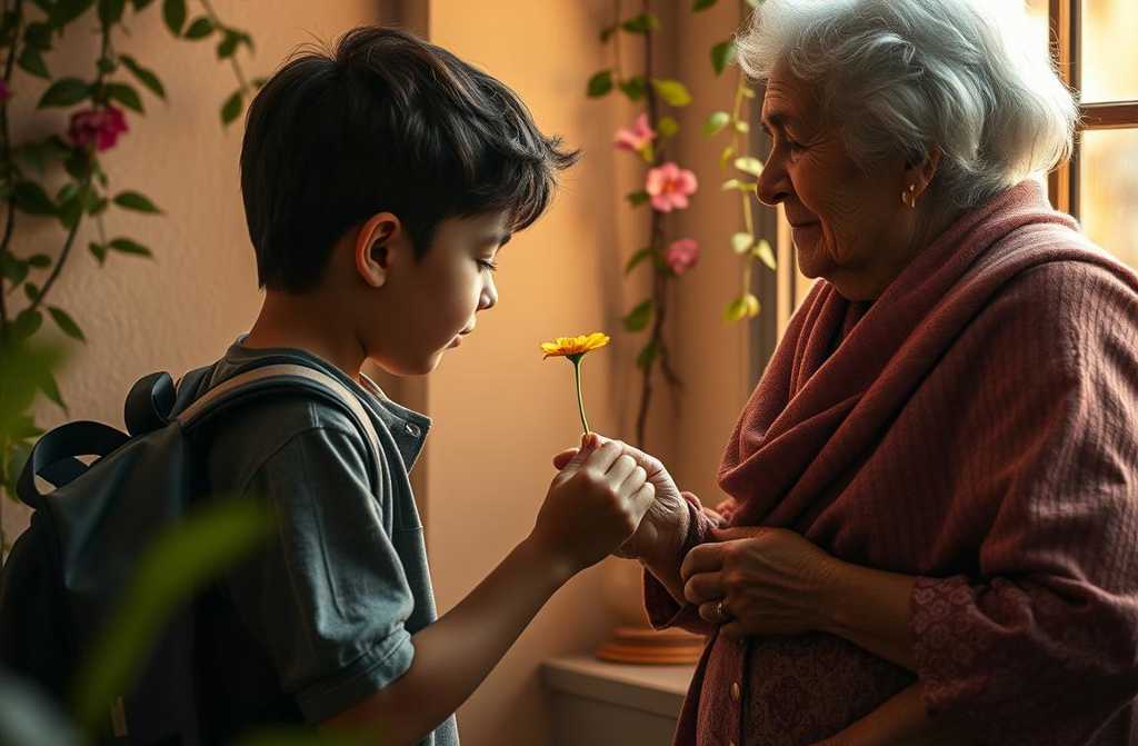 Добрый день, баба Нина, говорил он, ставя рюкзак на стул. Вот ваш любимый цветок.