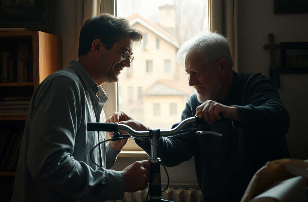 Я кладу велосипед на бок, тряпку под педаль. Батя опускается рядом, медленно, осторожно колени уже не те. Я это замечаю, но делаю вид, что нет.