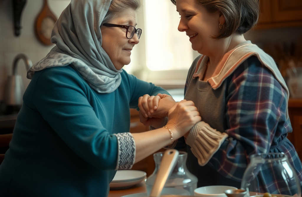Садятся на кухне. На столе борщ, вареники, гуляш: всё, чему Мария когда-то просила маму её научить.