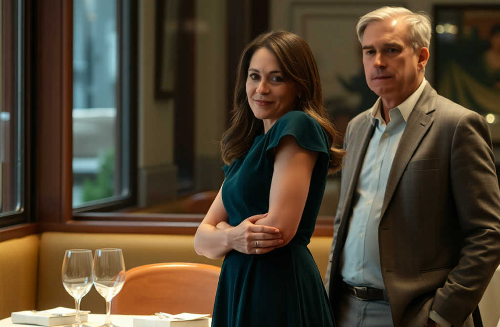 Ресторан из тех, где не слышно резких голосов. Только звон бокалов, глухие шаги и тихая музыка. Свет мягкий, как будто рисует на женщинах новый облик, а мужчинам дарит уверенность.