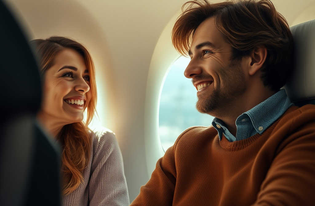 Слушай, надо тебе рассказать, что недавно произошло, когда мы с женой на самолёте летели. Мы хотели навестить родню в Санкт-Петербурге, и купили билеты заранее я даже специально выбрал места: чтобы мы рядом были, и обязательно у окна одно. Сам понимаешь, приятно смотреть в иллюминатор, да и подголовник там поудобнее.