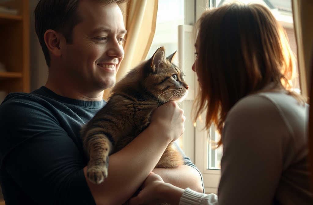 Утром Варвара собрала свои вещи и ушла. Молча, спокойно, не ожидая, что кот окажется важнее неё. С тех пор Пётр живёт с Красавчиком, и кот с радостью встречает своего хозяина после работы.