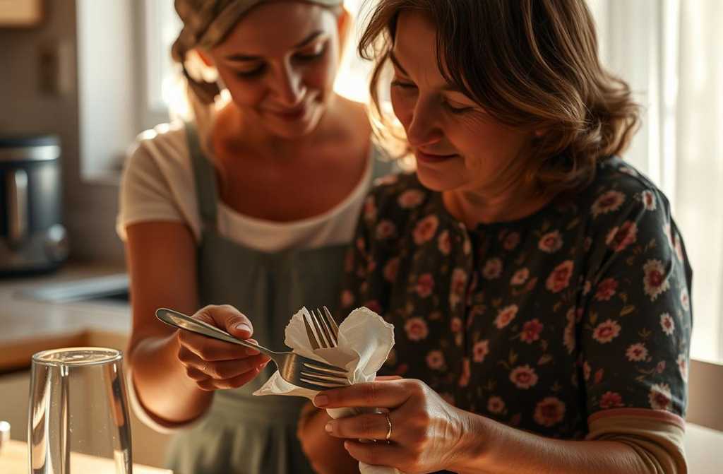 Тётя Галя предложила мне чтонибудь перекусить и начала накрывать стол. Пока она ставила посуду, я заметила, что она грязная. Когда она поднимала блюдо из кастрюли, я достала из сумки антибактериальные салфетки и начала вытирать вилки.